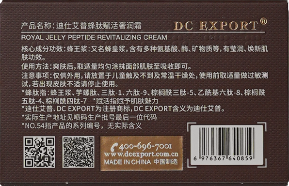 蜂王浆、芋螺肽、三肽-1、六肽-9、棕榈酰三肽-5、乙酰基六肽-8、棕榈酰五肽-4、棕榈酰四肽-7、细小裸藻(EUGLENA GRACILIS)多糖、透明质酸钠、植物甾醇类、水解胶原、香精、1,2-己二醇、聚山梨醇酯-20、10-羟基癸酸、癸二酸、1,10-癸二醇、生育酚(维生素E)、卡波姆